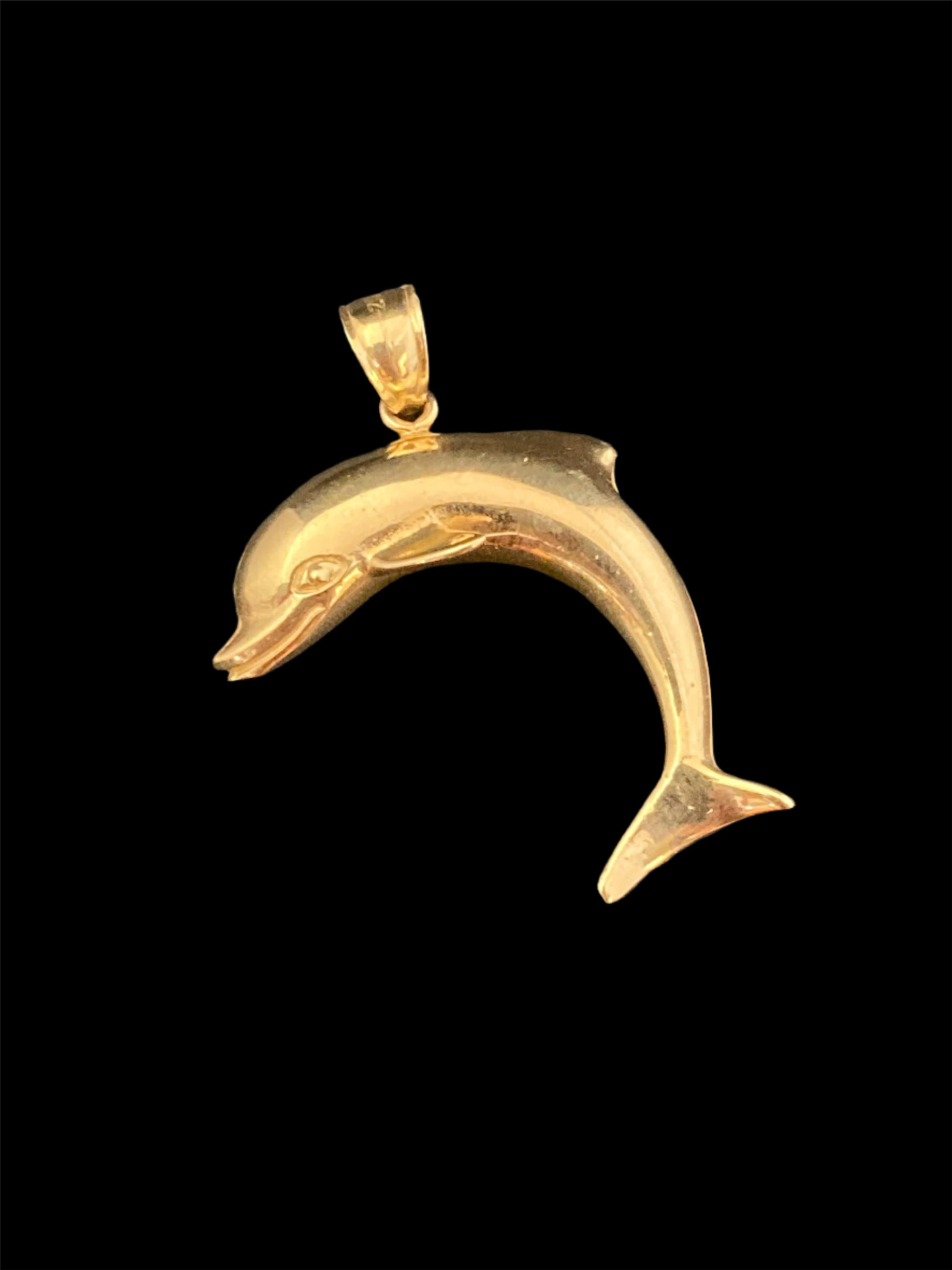 Handmade Solid 14 Karat Yellow Gold Dolphin Pendant.