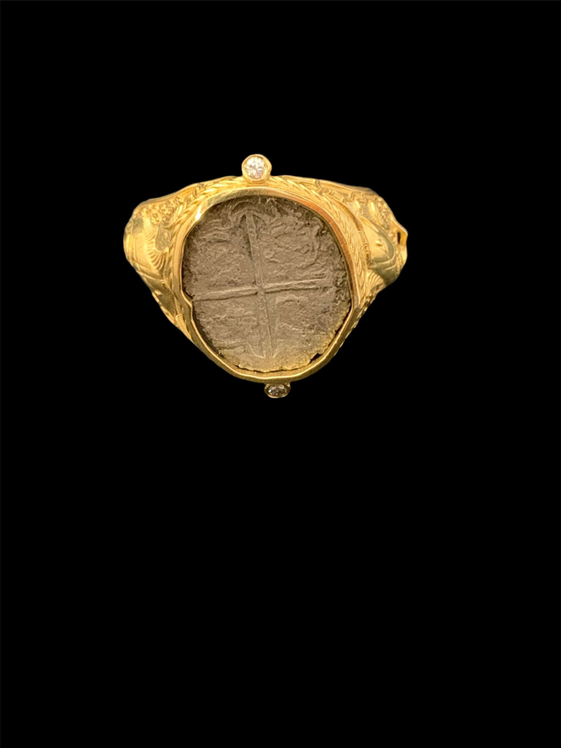 Bezel: 18 Karat Gold Ring with Diamonds, Sailfish, Jellyfish and Coral Reef Design