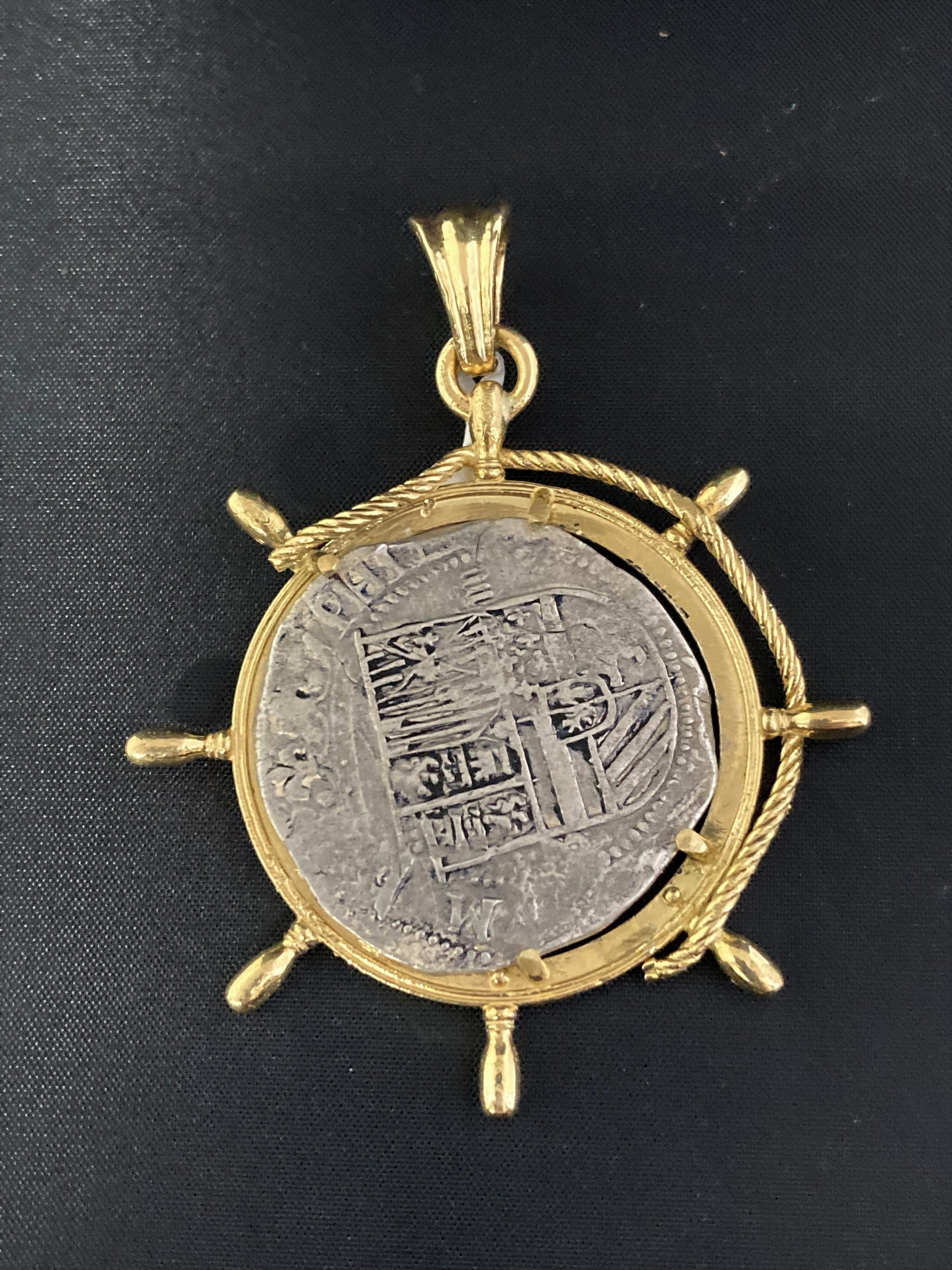 Frame: 18 K Gold Shipswheel Pendant with Rope Accent