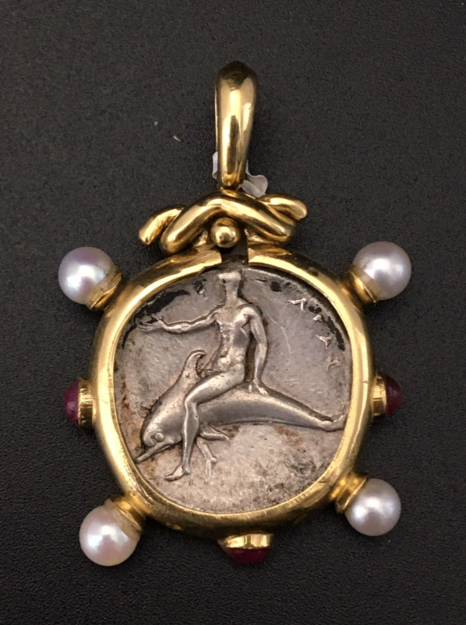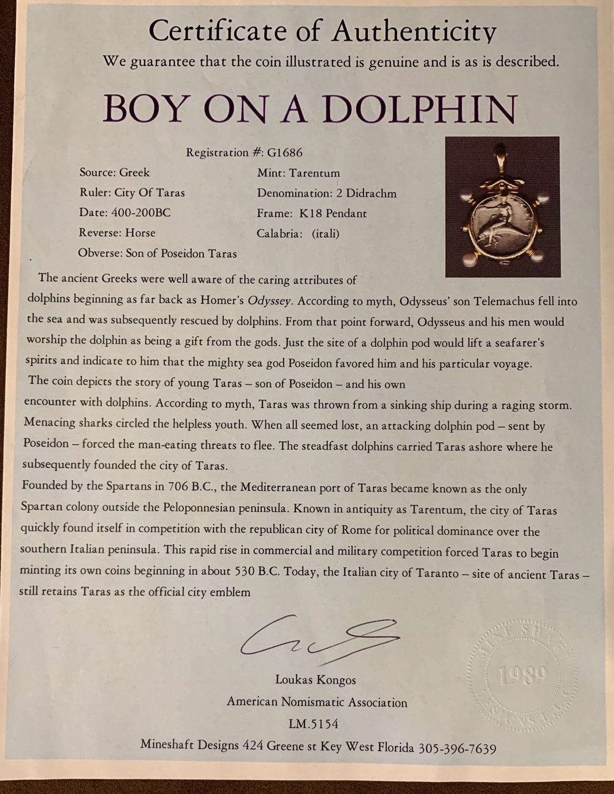 Obverse: Taras, Son of Poseidon Riding Dolphin