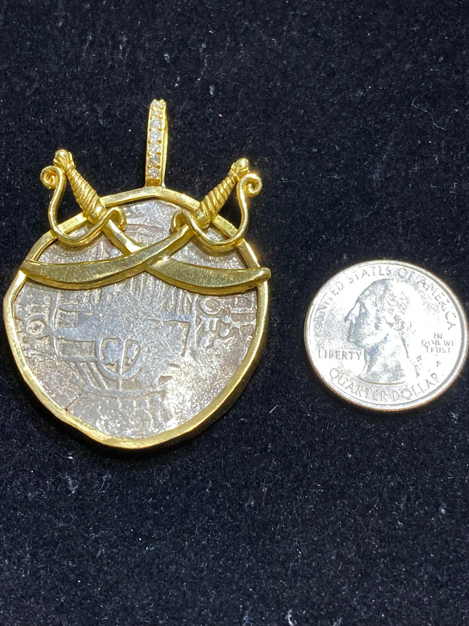 Framed in 14K Gold Sword Bezel with Diamonds in the bail