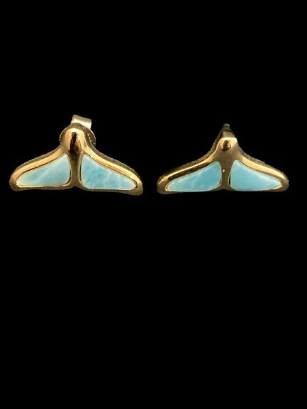 Larimar and Gold Whale Tale Stud Earrings