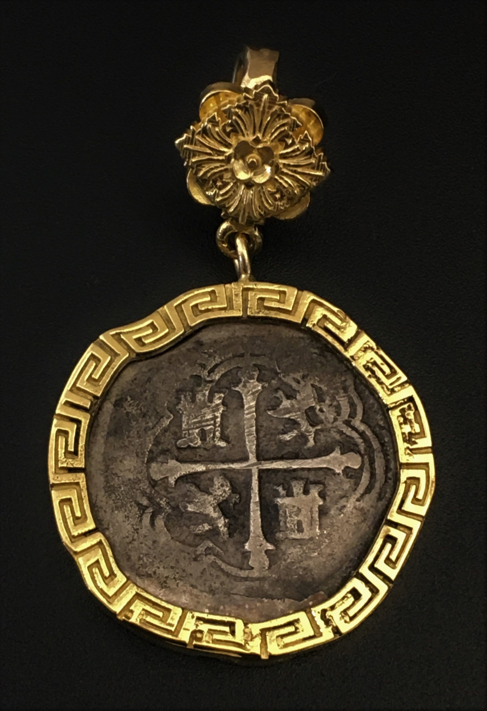Frame: 18 Karat Yellow Gold Pendant with "Greek Key" Mounting and Flower Bail